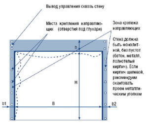 Приклавши каркас до отвору, потрібно протягнути всередині нього шнур електроживлення, за допомогою рівня визначити його правильне положення по відношенню до підлоги і закріпити саморізами і короб і направляючі.