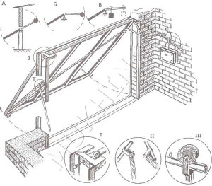 Схема основних елементів гаражних підйомно-поворотні ворота