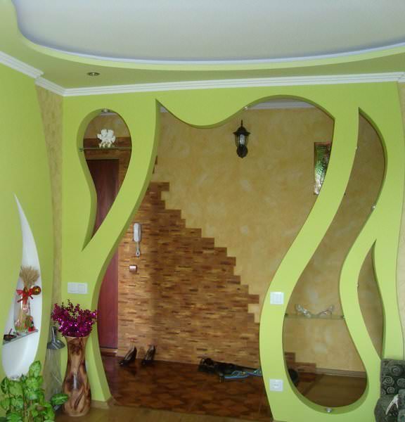 Гіпсокартон вважається універсальним матеріалом, і, мабуть, найбільш компромісним із серії «ціна-якість». Полюбилися на пострадянських просторах арки на місці входу в кімнату – підсумок перегляду одного популярного в 90-е затяжного американського серіалу. Наших співвітчизників так полонили арки в заставці до серіалу, що західна тенденція перекочувала в місцеву інтер’єрну моду і залишилася в ній надовго.