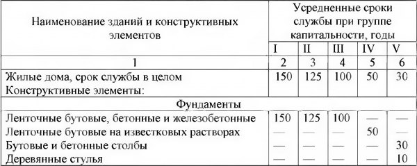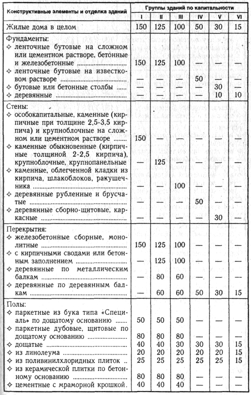 Усереднені терміни служби дломов і основних конструктивних елементів житлових будівель