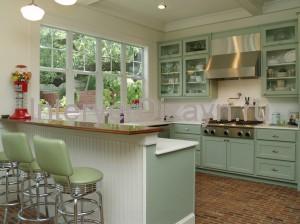 • Пристінна стійка. Така стійка характерна для невеликих кухонь. Може розташовуватися торцем або довгою стороною до стіни. Чудово виглядає біля вікна, адже як чудово сидіти за стійкою, пити каву або інші напої, і спостерігати за подіями на вулиці. Як варіант — розташування стійки у формі бару. Можна зайти за стійку з будь-якої із сторін, виконуючи функції бармена або відвідувача. Зазвичай така стійка виконується у формі півкола або прямокутника.