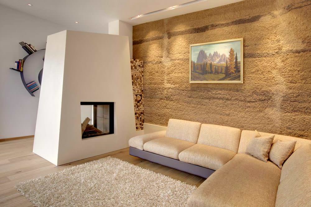 Фактурна штукатурка відмінно приховує шорсткості поверхні. Підходить до стилю Прованс.