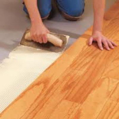 Укладання масивної дошки з допомогою клею проводиться у приміщеннях, які мають дуже велику площу або неправильні криволінійні контури, а також на складних ділянках кімнати: біля дверних і арочних отворів. У звичайних приміщеннях приклеювання дошки виробляють у тому випадку, якщо вона занадто тонка, товщиною 15-20 мм, найчастіше такі дошки виготовляють з дорогих цінних порід дерева.