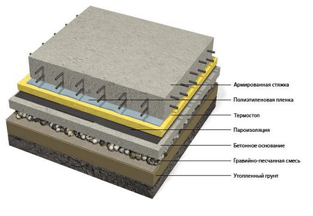 Схема укладання матеріалів при влаштуванні підлоги поверх ґрунту