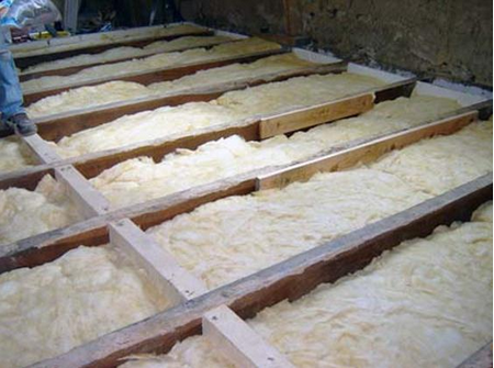 Його товщина повинна бути такою, щоб залишався зазор в 30-50 мм між плитами і дошками чистового статі: це необхідно для природного вентилювання підпільного простору. Мінеральний утеплювач можна комбінувати з пінопластом: це допоможе заощадити матеріальні засоби, так як пінопласт коштує дешевше. В такому випадку пінопласт повинен розташовуватися під мінеральною ватою. Всі щілини по краях і в області стиків необхідно герметизувати за допомогою монтажної піни. Поверх утеплювача настилається шар пароізоляційної плівки, після чого можна укладати дошки чистового статі.