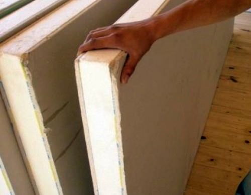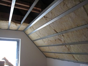 - Скловата – має досить слабку теплопровідність, що не дозволяє приміщенню віддавати тепло. Безперечною перевагою даного матеріалу можна назвати і його дуже низьку ціну. Але працювати зі скловатою дуже складно і неприємно. Та й від її дрібних частинок знадобиться надійно ізолювати кімнату: використовувати проложку між нею і гіпсом, а також пройтися клеєм по всіх щілинах в стиках плит. Навіть дуже дрібні волокна цього матеріалу, потрапляючи на очі або на шкіру, викликають сильне подразнення і свербіж.