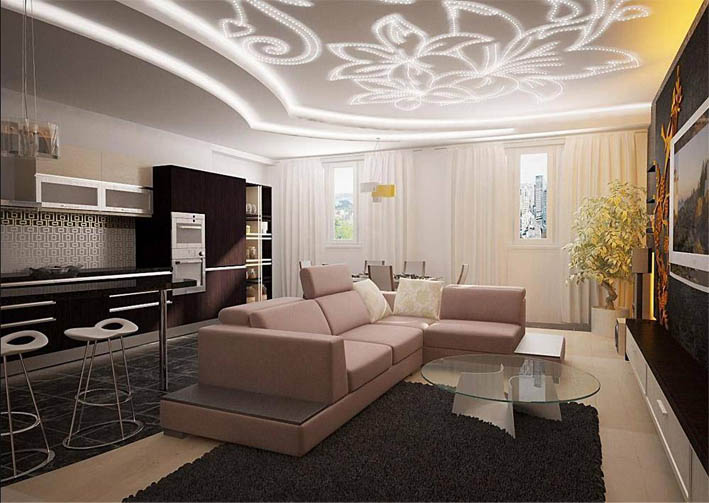 Галерея: стелі для вітальні з гіпсокартону (20 фото)