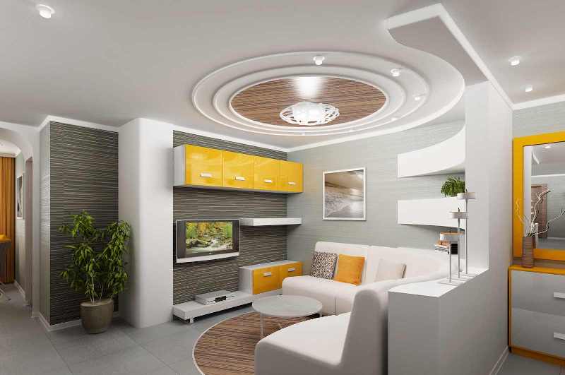 Найчастіше стелі з гіпсокартону відіграють велику роль у зонування кімнати. Одна частина, різна за кольором і висоті і з іншою частиною стелі буде зонувати, наприклад, область відпочинку (диван і крісла) з областю зберігання (модульна система).