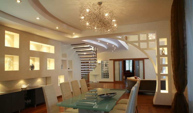 Якщо ви задумали зробити стелю з гіпсокартону у вітальні з використанням підсвічування, пам’ятайте про правила монтажу проводки.