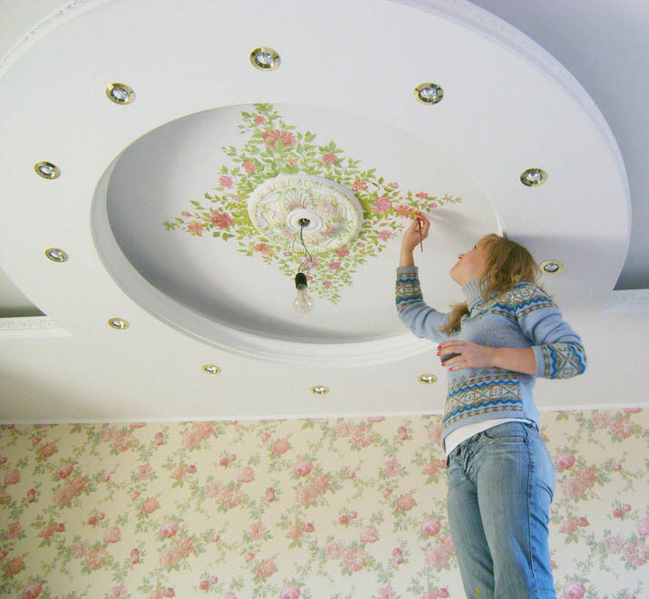 Оформлення стелі передбачає складний або не дуже дизайн, концепція якого залежить від особливості конструкції стелі.