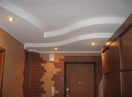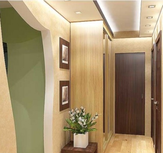 Стіни в передпокої, як і в решті квартирі, простіше і вигідніше вирівнювати гіпсокартоном. З цього матеріалу можна створювати складні конструкції. Це можуть бути всілякі ніші, арки, колони, полиці. Під гіпсокартон легко можна ховати електропроводи, тому доречно освітлення вбудовувати в конструкцію.