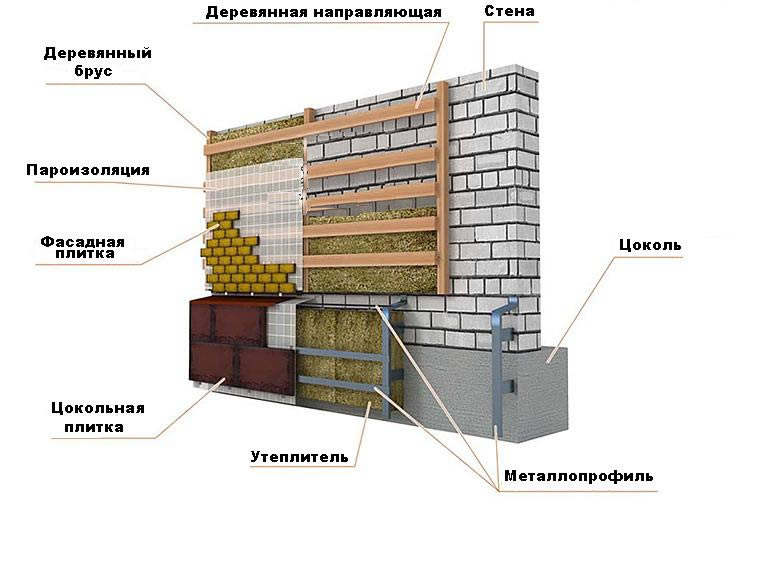 Схема пристрою утепленого фасаду та цоколя, обробленого штукатуркою