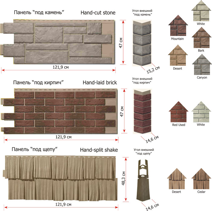 Приклад стандартних розмірів цокольного сайдинга, в залежності від його виду