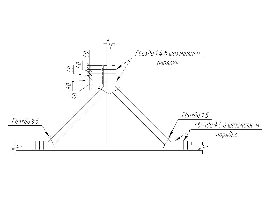 На кресленнях повинні бути зазначені місця розташування всіх додаткових елементів конструкції каркаса – укосини, упори. При цьому повинні бути вказані способи їх кріплення, як на фото.