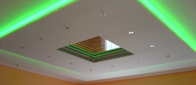 - В їх використанні є одна безперечна перевага: при роботі вони не виділяють тепла, що ідеально забезпечує повну пожежну безпеку в пристрої гіпсокартонної стелі. До того ж така стрічка споживає мінімальну кількість електроенергії.