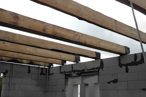 Балки, що йдуть уздовж стін можна ставити впритул до них. Між ними і газобетонними блоками потрібно залишати зазор до 3 см, який заповнюється герметиком і утеплювачем.
