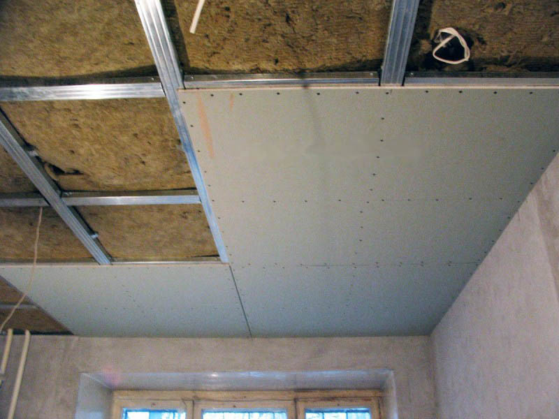 - Мінеральна вата прекрасно поглинає шум (цей показник може доходити до 70 %). В процесі її використання для утеплення стелі, вона практично не змінює своїх технічних характеристик, практично не запалюється. Головна перевага цього матеріалу – він повністю екологічно чистий, не представляє небезпеки для людини. Недолік вати полягає в тому, що вона не пропускає через себе повітря, порушуючи, таким чином, природний процес циркуляції повітря між ГКЛ від компанії Кнауф і стіною. Це є суттєвою проблемою при монтажі вбудовуваних світильників, тому що вони будуть сильно нагріватися і можуть швидко прийти в непридатність. Саме тому їх часто замінюють накладними світильниками.