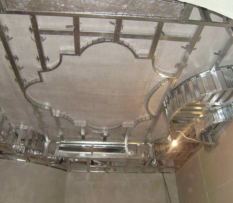 Закріплений на базовій поверхні каркас з металевого профілю обшивають гіпсокартонними листами, ця робота вимагає деякої підготовки.
