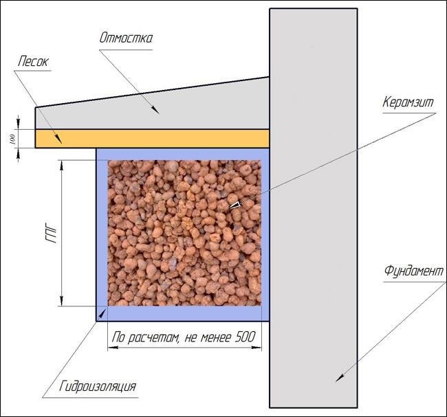 Схема утеплення фундаменту каркасного будинку з використанням керамзиту