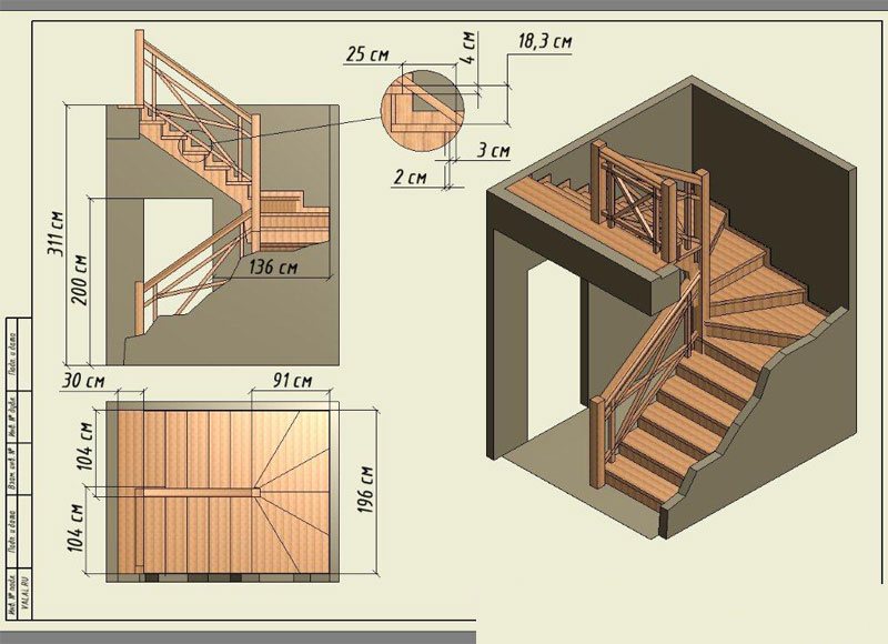 Вона не повинна бути дуже крутий. Модульні сходи виготовляють з міцних порід дерева. Вони мають довгий термін служби і дуже надійні. Модулі такий сходи можуть витримати навантаження до 200 кілограм. Г-образні і П-подібні сходи — це комбінації з декількох маршових прольотів.
