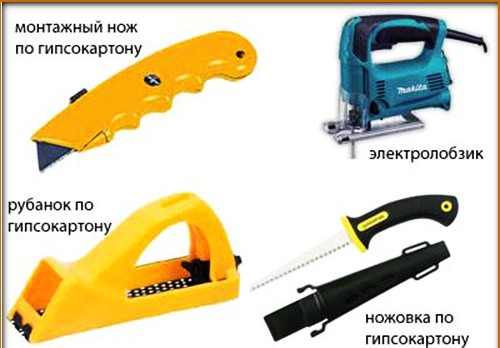 Особливої уваги заслуговує фігурна порізка гіпсокартону. Найкращий варіант – електролобзик, їм зручніше і простіше працювати. Якщо такого немає, виручить ножівка для гіпсокартону.