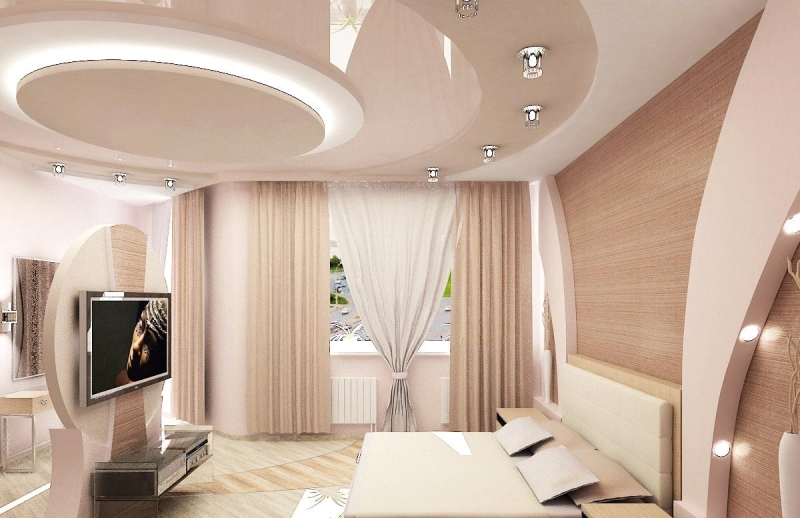 Наскільки вигнутими будуть елементи, залежить тільки від ваших задумів і можливостей. Якщо ви зібралися робити багато хвиль, або вам здається цікавим наявність безлічі напівкруглих елементів на стелі, готуйтеся до того, що така стеля вся увага може взяти на себе. А значить, інтер’єр повинен бути досить суворим і простим.