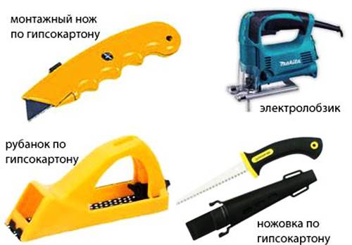 Існує кілька способів різання гіпсокартону самим різноманітним інструментом – від електролобзика до будівельного ножа. Застосування останнього не завжди зручно, а електроінструменти утворюють пил. Для вибору оптимального способу різання того чи іншого конструктивного елемента, слід ознайомитися з набором інструменту, що застосовується для різання ГКЛ більш докладно.