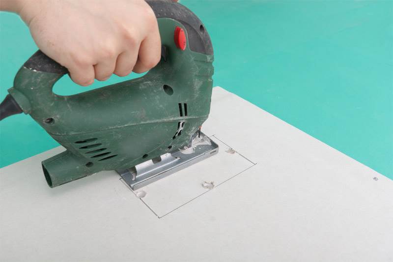 - Електролобзик. При наявності якісних пилок для даного інструменту труднощів різання ГКЛ не виникне. Бажано, щоб пилки були призначені для різання металу. У їх лез більш дрібні зуби, які залишають мінімум сколів і щербин на матеріалі. За допомогою електролобзика нескладно буде вирізати закруглені елементи.