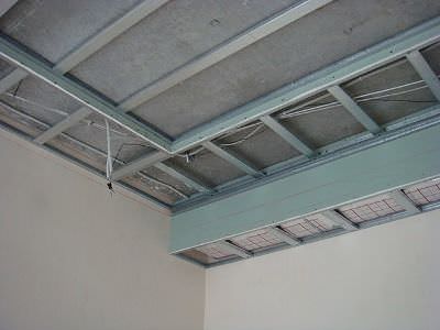 Готовий каркас з оцинкованого металевого профілю ми обшивають гіпсокартоном, який слід правильно нарізати спеціальним ножем або ж будівельним різаком. Починайте обшивку з довгих шматків, від стіни, залишайте між шматками ГКЛ невеликі щілини, які необхідні для виключення механічного напруги матеріалів і дефектів. Обшивку справляєте на саморізи через кожні 20-25 см.