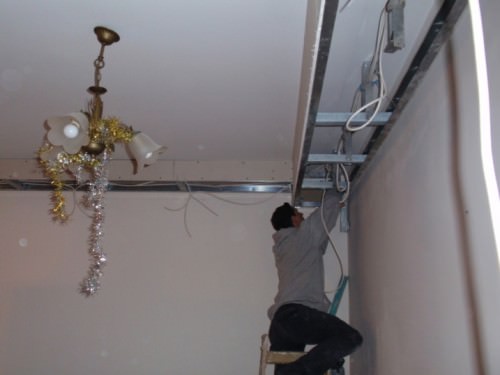 Монтаж стельового короби з підсвічуванням відбувається з усіма вимогами під світильники і лампи, їх розстановку і закріплення, а тому тут слід працювати в парі з електриком, який буде займатися розведенням.