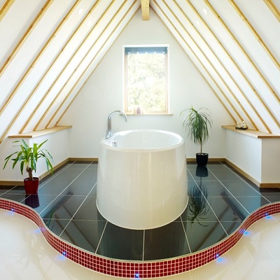 • Ступінь нескользкости для підлогової плитки, що використовується у ванній кімнаті не повинна бути вище 9 (цю цифру можна побачити на упаковці поряд з літерою R). Найоптимальніше рішення — матова плитка зі злегка шорсткою поверхнею.
