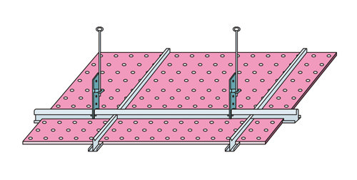Підвіси встановлюються паралельно рейках, з кроком в 1,2 м. Починати слід від стіни, установивши перший крок до 0,6 м, далі, строго за схемою, через кожні 1,2 м.