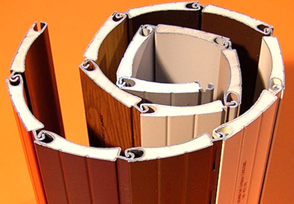 - Зовнішній профіль у вигляді алюмінієвих ламелей для підйомно-поворотних і ролетних воріт використовується для формування воротного полотна. Ці комплектуючі з’єднуються між собою завдяки крючкообразным пазовий кріпленням, принцип функціонування яких виражається в щільному взаємне зацепи.
