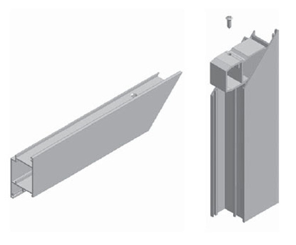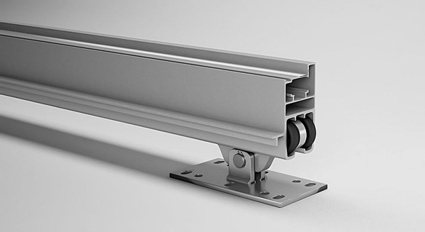 - Посилений направляючий профіль для відкатних воріт. Його структура передбачає кілька секцій, верхній відсік замкнутий, а нижній відділ з пазом під роликовим механізмом. Завдяки такому профільного основи ворітної полотно надійно кріпиться на підшипникових роликах і плавно рухається при відкритті.