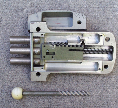 - Ригельний замок з рейковою системою. Такий затвор можна придбати в магазині і спорудити його своїми руками зможе тільки досвідчений майстер. Він складається з ключа зі спеціальними виїмками і відповідною запірною основи. Така конструкція володіє особливою міцністю і довговічністю, однак, існує ймовірність того, що ключ можуть підробити. Тому для закриття хвіртки краще використовувати який-небудь додатковий запор.