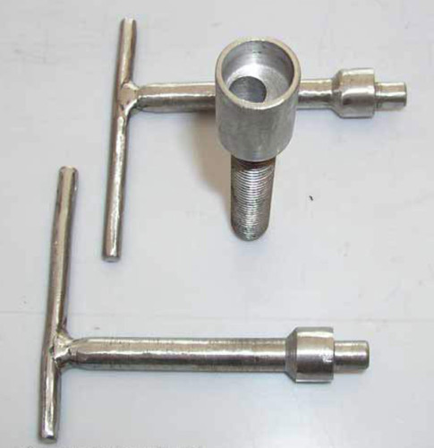 - Гвинтові затвори. Гвинтовий механізм встановлюється з лицьової сторони воріт і досить простий у використанні. Складається він з стрижня з гвинтовою різьбою і ключовою основою, яка має виїмку і невеликий шпиль. За допомогою спеціального ключа, який має відповідне поглиблення і шпиль, що приводиться в дію механізм затвора. Такий замок можна легко зробити своїми руками. Однак, складність такого пристрою полягає в тому, що в калиточном отворі має бути достатньо простору для виїмки з різьбою, в яку буде укручуватися сам стрижень. До того ж, такий запор нескладно зламати шляхом підбору схожого ключа.
