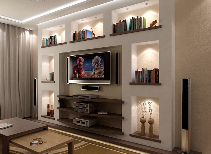 Посудіть самі, набагато зручніше розташувати декоративне освітлення, плазмовий телевізор, динаміки стереосистеми в симпатичних нішах, ніж просто поверх стіни, забивши пару дюбелів. І, якщо бажання прикрасити своє житло подібної красою у вас є, ми докладно опишемо процес вже зараз.