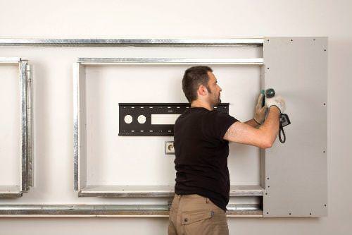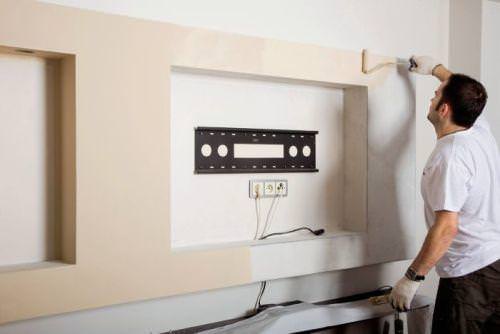 Спочатку, набрасываете простий план, тільки для себе, щоб було простіше працювати надалі. Після робите розмітку по підготовленій стіні, куди і наносите всі розміри телевізора, ніші, її декору, опорядження. Не забудьте і про те, що в нішу необхідно відразу завести живлення, кабель супутника або звичайний, проводи на звук і так далі, і закріпити це все всередині майбутньої ніші.