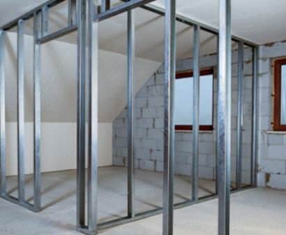 Каркасні перегородки – найбільш обширна і найпоширеніша група. У своїй основі такі системи мають каркас з профілів. В житлових приміщеннях і невеликих приватних конторах найчастіше воліють встановлювати каркасні перегородки з гіпсокартону. Профіль для ГКЛ перегородок, з яких робиться внутрішній металевий остов, не тільки додає жорсткість конструкції, але і дозволяє:
